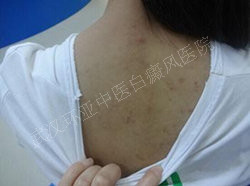 到了这家医院,医生询问了下病情后,先带我做了下wood灯检查,仪器照射下,我的整个背部除了明显的白斑外,还有好多隐性白斑。医生说要吃药和定期注射药物,但考虑到我在外地上学,打针不方便,于是就没有开注射药剂,而是加大了药量。